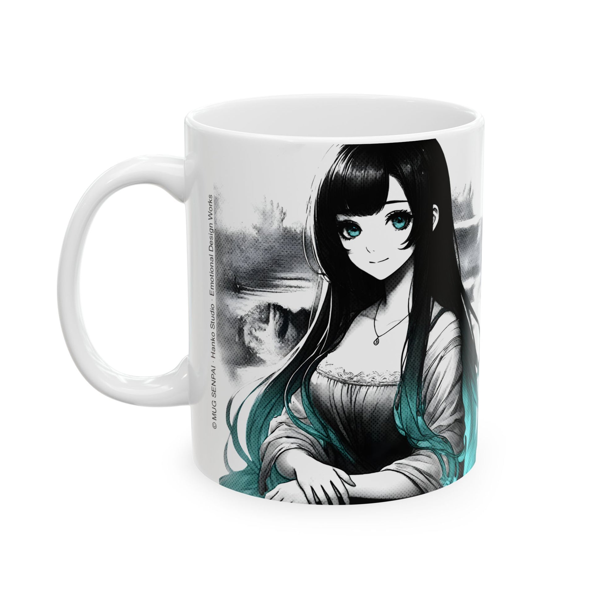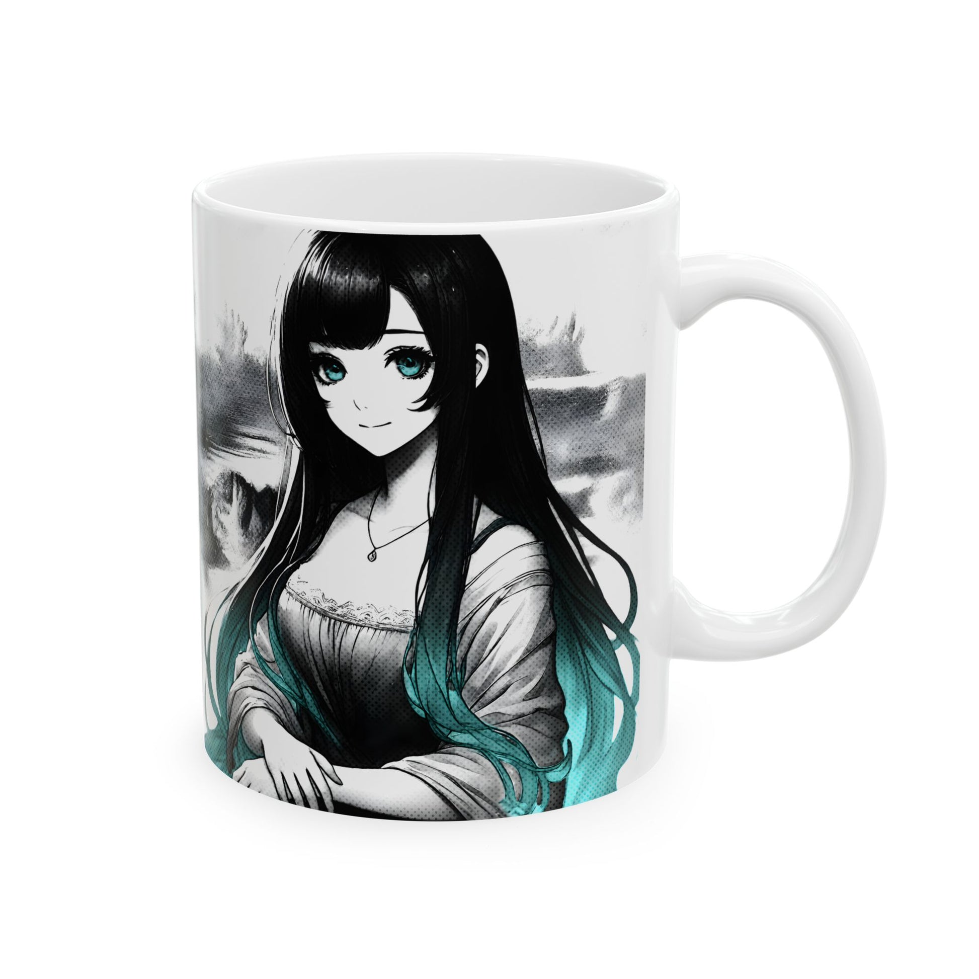 This anime aesthetic mug brings a quiet kind of calm — a soft portrait, a knowing smile, and that teal glow that feels like sunrise on a slow morning.