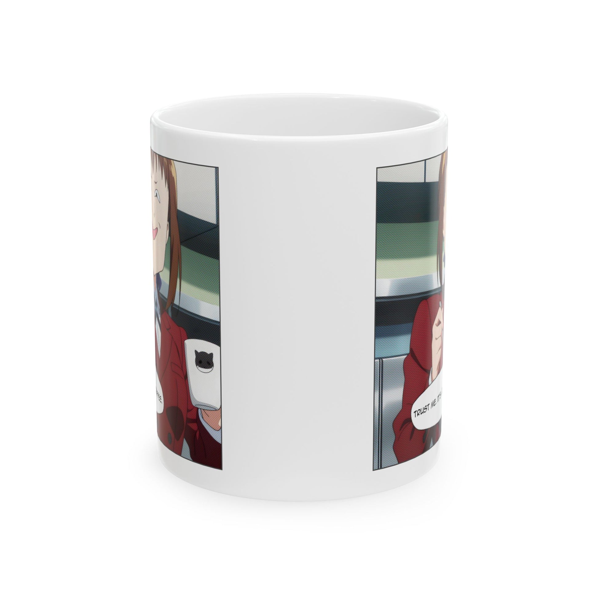 Anime Coffee Mug – Suspicious Girl Meme Cup with “Trust Me It’s Just Coffee” Quote, Funny Otaku Gift for Work Chaos