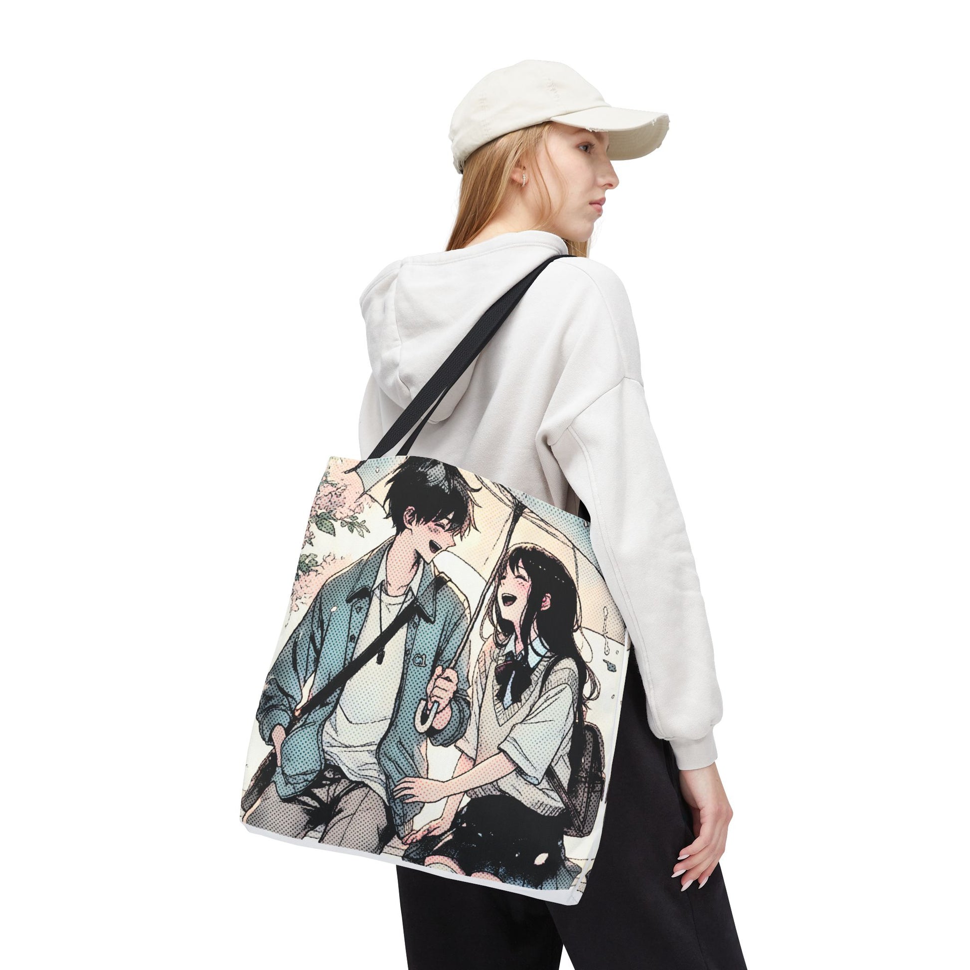 Anime Couple Tote Bag – Soft Romantic Rain Scene, Cute Manga Umbrella Moment, Aesthetic Love Story Bag