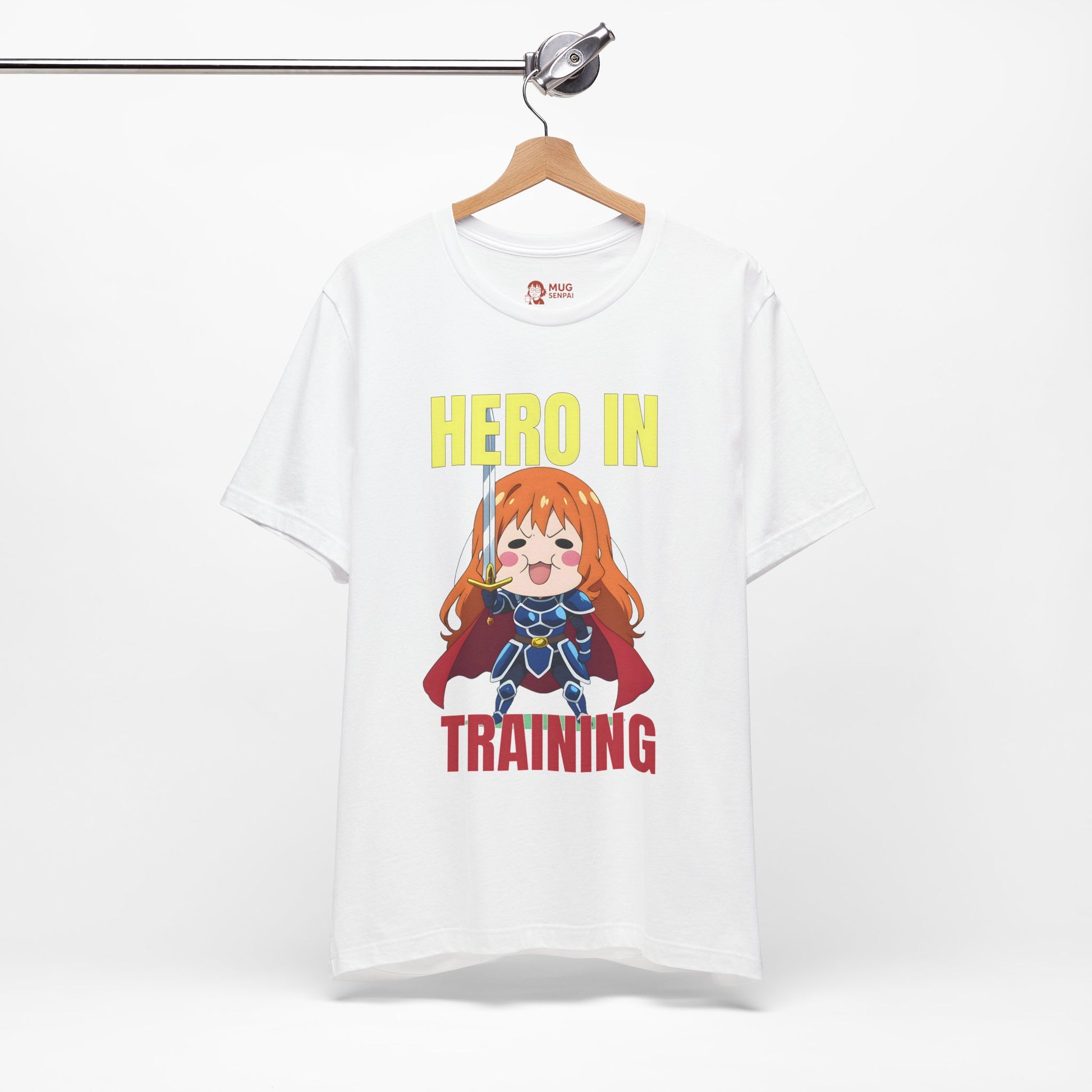 Anime Hero T-Shirt – Chibi Knight Girl “Hero in Training” Tee, Cute Fantasy Graphic Shirt, Encouraging Otaku Gift for Gamers and Dreamers