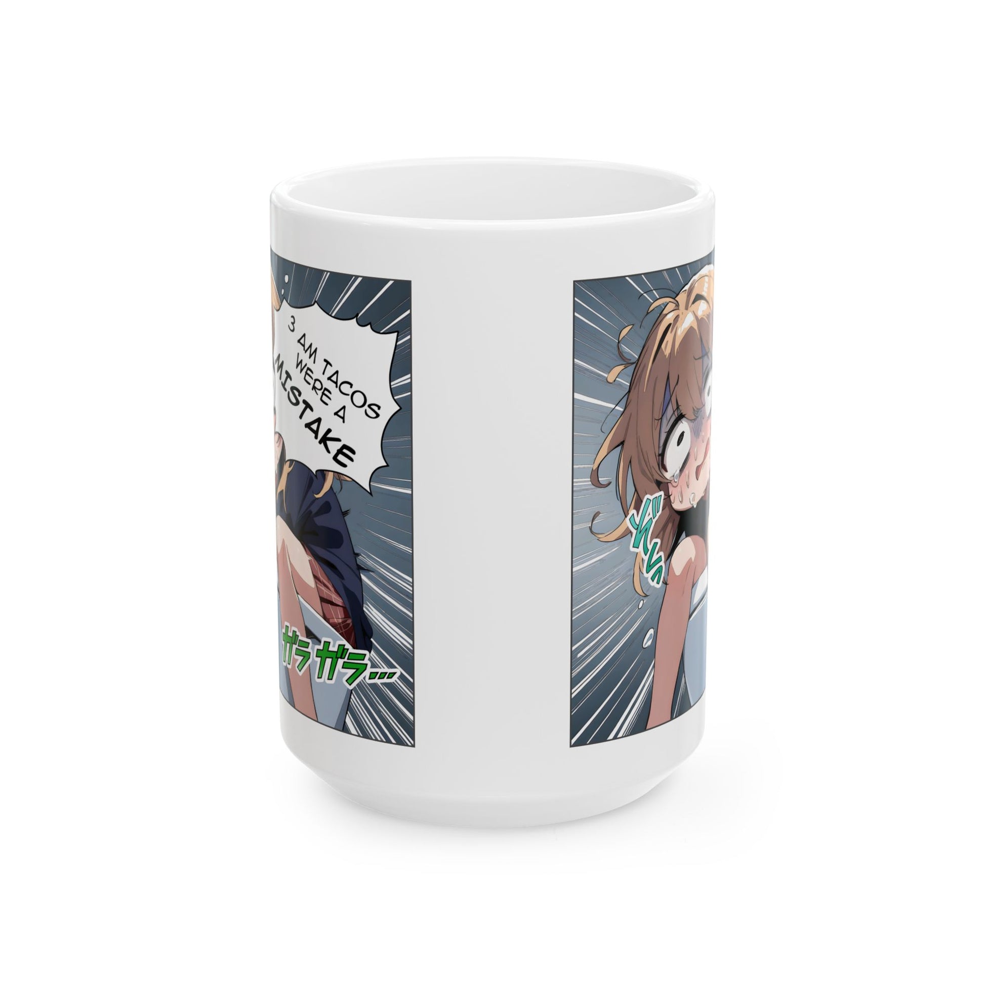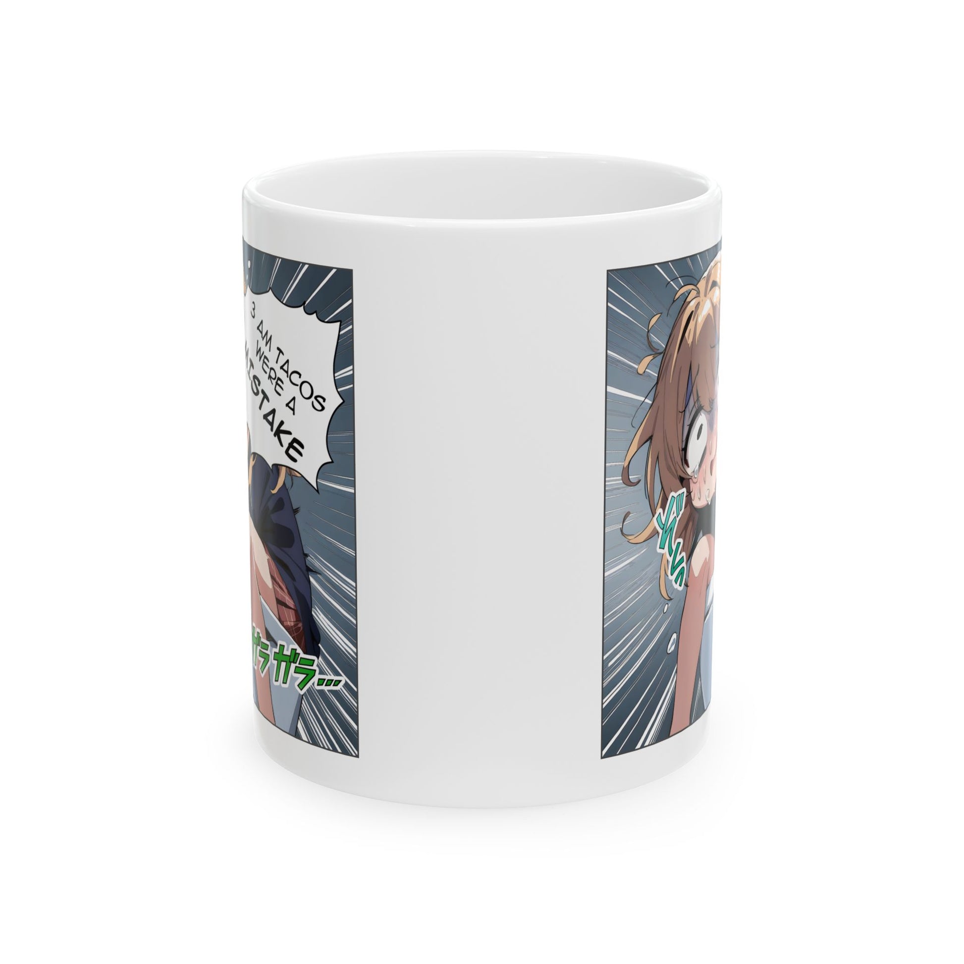 Funny Taco Mug – 3AM Food Regret Anime Meme Cup, Hilarious Late-Night Snack Panic Scene for Otaku & Chaos Lovers